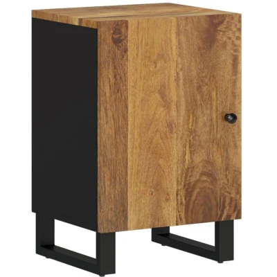 VidaXLThis bathroom cabinet is a great choice for your bathroom, making it tidy and organised! Solid mango wood: This bathroom cabinet is made of solid mango wood combined with engineered wood. Solid mango wood is a strong, tropical hardwood that makes sturdy furniture. Its beautiful wood grains make every piece of furniture slightly different from the next.Ample storage space: The bathroom furniture has 2 compartments, offering various storage options and extra space to store items in your bathroom.Stable feet: The iron feet of the bathroom cabinet ensure sturdiness and stability.Flexible door: You can install the door either on the left side or right side based on your own needs. Warning:To prevent it being overturned, this product must be used with the provided wall attachment device. Good to know:Each item is unique with variations in colours and grains. The delivery is random, ensuring the exclusivity and individuality of your product.