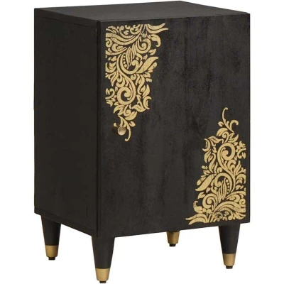 This Wooden Bathroom Cabinet is a versatile storage solution characterized by its modern design, making it ideal for various indoor uses. Its clean, rectangular shape and minimalist aesthetic enable it to seamlessly blend into any living space, providing both style and practicality. Perfect for enhancing bathroom environments, this cabinet offers a distinct touch of elegance with its simplicity and functionality, ensuring it serves as a timeless piece in any room. Materials: Crafted from solid mango wood, this cabinet combines natural beauty with robust durability. The use of engineered wood complements its solid construction, ensuring longevity and sturdiness for everyday use while maintaining an attractive appearance. Included Components: This cabinet features elegant brass handles that add a touch of luxury and refinement to its overall design. The flush doors present a smooth surface, contributing to its sleek, modern aesthetic. Additionally, the brass post legs provide strong support, ensuring stability and dependability. Features /Function /Design: With a gold screen-printed design, this cabinet offers a unique visual appeal that enhances any living space. The inclusion of brass knobs ensures easy access to storage compartments, adding comfort and convenience to its functional design. Recommended Uses: Ideal for indoor use, this bathroom cabinet can be placed in any living room, serving as a versatile storage solution. It accommodates a variety of items, making it perfect for organizing personal or household items, enhancing any area it occupies. Care &Maintenance: Maintaining this cabinet's pristine appearance is straightforward. Simply wipe it with a dry cloth to prevent dust buildup, ensuring it retains its beautiful finish and remains a stunning feature in your bathroom or living space.