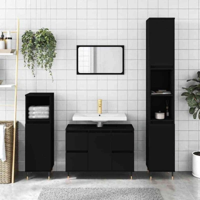 vidaXL Bathroom Cabinet Black 80x33x60 cm Engineered Wood