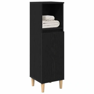 vidaXL Bathroom Cabinet Black Oak Storage Unit Matte Finish Engineered Wood with Solid Legs 30x30x100 cm Versatile and Elegant Design