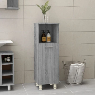 General description This bathroom cabinet, featuring spacious storage space, is a great addition to your bathroom, giving it a tidy and striking appearance. The engineered wood is of exceptional quality with a smooth surface, providing strength, stability, and resistance to moisture. With 3 compartments and 1 door, this freestanding bathroom cabinet helps you organize toiletries effectively. Additionally, the cabinet has high feet to prevent erosion of items by running water. Technical specifications Colour: Grey sonoma Material: Engineered wood Dimensions: 30 x 30 x 95 cm (W x D x H) SKU: 815607 Installation Each product comes with an assembly manual in the box for easy assembly. To prevent overturning, this product must be used with the wall attachment device provided. Other information