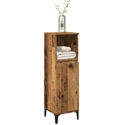 General description This bathroom cabinet is a great choice for your bathroom, making it tidy and organized. It features a durable engineered wood construction with a smooth surface, providing strength, stability, and moisture resistance. The cabinet offers ample storage space with one open compartment and two compartments with doors, allowing for various storage options. The metal feet ensure sturdiness and stability, while the flexible design allows you to install the door on either the left or right side based on your needs. Technical specifications Colour: Old wood Material: Engineered wood, metal Overall dimensions: 30 x 30 x 100 cm (W x D x H) Assembly required: Yes SKU: 857111 Other information Warning: To prevent it from being overturned, this product must be used with the provided wall attachment device.