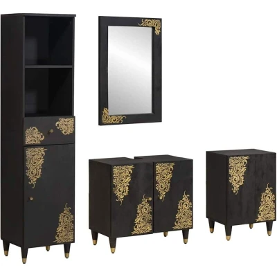 vidaXL Bathroom Cabinet Set with Drawer 4 pcs Black Solid Mango Wood