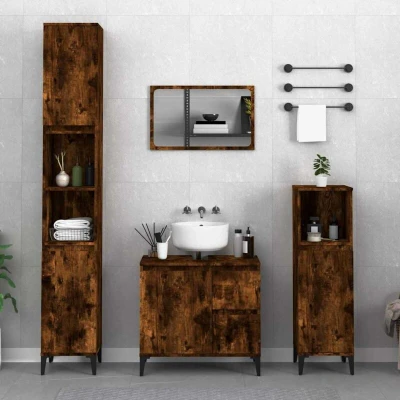 vidaXL Bathroom Cabinet Smoked Oak 65x33x60 cm Engineered Wood