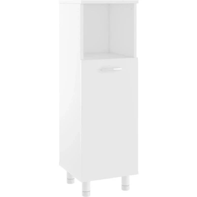 General description This bathroom cabinet offers additional storage space while enhancing the aesthetic of your bathroom with its clean lines and sleek design. Made from sturdy engineered wood, it features three compartments and one door, providing versatile storage options. The cabinet is easy to clean with a damp cloth and includes a handle for convenient opening and closing. Technical specifications Colour: White Material: Engineered wood Overall dimensions: 30 x 30 x 95 cm (W x D x H) Assembly required: Yes WARNING: To prevent overturning, this product must be used with the wall attachment device provided. Please note: Screw(s) and plug(s) for inside the wall are not included. Use suitable screw(s) and plug(s) for your walls. Other information