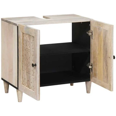 ManoManoGeneral description This Wooden Bathroom Cabinet combines rustic charm with functionality, making it a perfect addition to any bathroom style or decor. Its clean rectangular design allows for easy integration into your space, providing a stylish solution for storing toiletries. Technical specifications Colour: White Material: Solid mango wood Overall dimensions: 33 x 62 x 58 cm (W x L x H) Storage: Features 2 doors Indoor use only Assembly required: Yes EAN: 8721158452283 SKU: 4018135 Brand: vidaXL Usage Efficient storage with multiple compartments and smooth flush doors for organizing toiletries and bathroom essentials. Simple maintenance: Wipe down with a dry cloth to keep the cabinet looking fresh and maintain its rustic charm. Other information