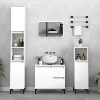 VidaXLThis bathroom cabinet is a great choice for your bathroom, making it tidy and organised! Durable material: The engineered wood is of exceptional quality with smooth surface and also features strength, stability, and resistance to moisture.Ample storage space: The bathroom furniture has 2 drawers and 1 compartment with door, offering various storage options and extra space to store items in your bathroom.Metal feet: The metal feet offer sturdiness and stability for the toilet cabinet.Flexible design: You can install the door and drawers either on the left side or right side based on your own needs. Warning:To prevent it being overturned, this product must be used with the provided wall attachment device.