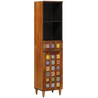 ManoManoThis modern bathroom cabinet exudes simplicity and functionality, making it a striking addition to any contemporary bathroom setting. Its sleek design is evident in its clean lines and minimal ornamentation, seamlessly fitting into compact spaces while enhancing the room's aesthetic. The cabinet offers versatile storage solutions, perfect for families or individuals aiming to keep their bathroom essentials neatly organized and within easy reach. Solid Mango Wood: Both the surface and doors of this bathroom cabinet are crafted from solid mango wood. This material not only provides a robust and durable structure but also adds a natural and elegant touch to the bathroom decor. Its resilience ensures the cabinet withstands daily wear and tear, offering long-term use and maintaining its stylish appearance. Functional Design: The cabinet features a rectangular shape with thoughtful dimensions of 38 x 33.5 x 160 cm, ideal for fitting into narrow bathrooms without compromising on storage