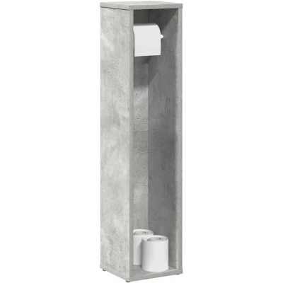 ManoManoGeneral description The bathroom cabinet is an ideal choice for your space, combining both style and functionality, offering ample storage to keep your toiletries and essentials neatly organized. It includes a built-in paper roll holder, enhancing convenience by keeping toilet paper within easy reach and neatly organized. Technical specifications Colour: Concrete grey Material: Engineered wood Dimensions: 20.5 x 20 x 90 cm (W x D x H) Total weight capacity: 60 kg Assembly required: Yes Installation To prevent it from tipping over, this product must be used with the provided wall attachment device. Usage Easy to maintain: Thanks to its smooth surface, the bathroom cupboard is easy to clean with a damp cloth and requires less maintenance. Ample storage space: This bath cabinet offers ample storage space to keep your essentials well organized and within reach. Other information