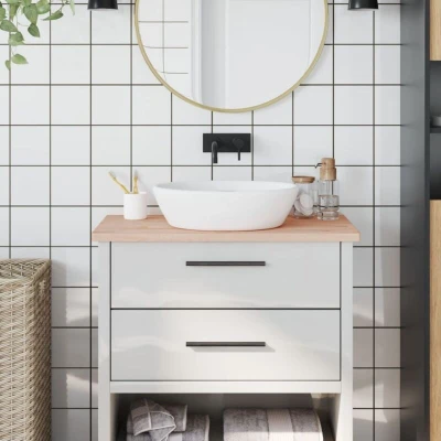 Are you planning to renovate your countertops at home? This wooden bathroom countertop is a perfect choice! Durable construction: This bathroom worktop is made of solid beech wood, which is a beautiful natural material. Beech wood has a straight grain and is very durable.Versatile applications: This wooden countertop can be used as a bathroom vanity top, a shelf, a cabinet top, and more. You can also combine it with any styled legs to suit your needs.Rounded corners: The 4 rounded corners of the bathroom top can effectively reduce the possibility of a collision, protecting the safety of your children and family.Easy-to-clean surface: The smooth countertop is easy to clean with a damp cloth. Good to know:Each item is unique with variations in colours and grains. The delivery is random, ensuring the exclusivity and individuality of your product.