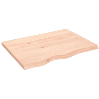 ManoManoGeneral description This wooden bathroom countertop is an excellent choice for those looking to renovate their spaces. Made from solid oak wood, it features a beautiful natural medium brown color and a dense grain, adding a unique touch to any bathroom. The countertop is versatile and can be used not only as a bathroom vanity top but also as a shelf, cabinet top, desk top, or table top. Its untreated surface allows you to maintain its natural look or customize it with paint or lacquer according to your preference. Each piece is handmade with a live edge, showcasing the natural knots, cracks, and color variations that make every countertop unique. Technical specifications Material: Solid oak wood (untreated) Overall dimensions: 80 x 60 x (2-4) cm (L x W x T) Max. load capacity: 38.4 kg Features live edge SKU: 3156027 Other information As a natural product, wood may show knots and imperfections that are filled with black fillings for a smooth appearance.