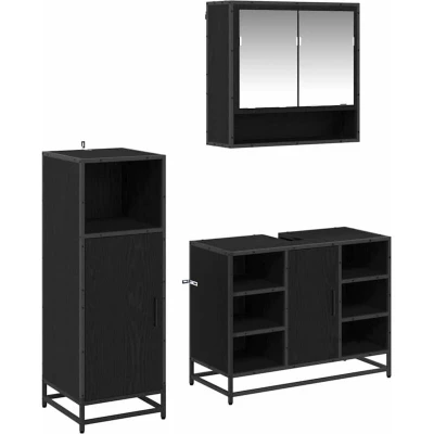 vidaXL Bathroom Furniture Set 3 pcs Black Oak Engineered Wood