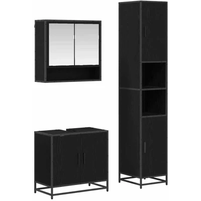 vidaXL Bathroom Furniture Set 3 pcs Black Oak Engineered Wood