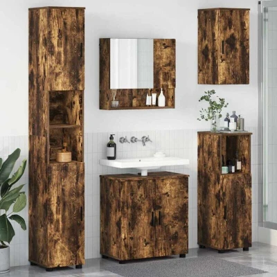 ManoManoGeneral description This Modern Bathroom Furniture Set is perfect for blending style and practicality. With a minimalist vibe and clean lines, it adds a trendy look to any modern bathroom. The set includes wall-mounted mirror cabinets that provide ample storage while maintaining a classy appearance. Technical specifications Colour: Smoked oak Material: Engineered wood Overall dimensions: 61 x 35 x 64 cm (L x W x H) Weight: 74.46 kg Number of items: 5 Frame material: Engineered wood With 8 doors Indoor use only Assembly required: Yes EAN: 8721288869654 SKU: 3392988 Brand: vidaXL Installation Easy to install as a wall-mounted unit, freeing up valuable floor space. Usage Low-maintenance; simply wipe with a damp cloth to keep it looking fresh. Ideal for daily use, ensuring it stays clean without much hassle. Other information