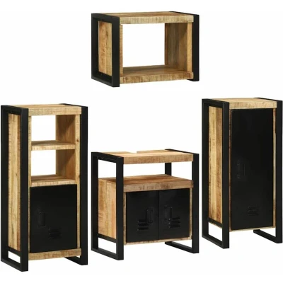 ManoManoGeneral description This Wooden Bathroom Furniture Set is all about rustic charm and clever, space-saving design. If you want to make the most of your bathroom space while keeping a modern look, this set has got you covered. It features elegant rectangular shapes and lovely finishes, providing several wall-mounted cabinets with flush doors for a tidy, organized appearance that's perfect for storing your essentials. The back is unfinished and not meant to show, but it fits right in with various bathroom sizes and styles, offering both practicality and aesthetic appeal. Technical specifications Materials: Solid mango wood and metal frame Colour: Brown Overall dimensions: 55 x 35 x 60 cm (L x W x H) Number of items: 4 With 4 doors Assembly required: Yes Indoor / outdoor: Indoor only EAN: 8721158305725 SKU: 3305680 Brand: vidaXL Included Components Two wall-mounted cabinets (one larger and one smaller) Three cabinets for various storage options Features / Function / Design Sleek flush