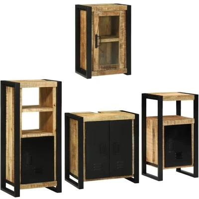 ManoManoGeneral description This Bathroom Furniture Set brings a lovely mix of style and practicality to any modern bathroom, giving it a rustic vibe that fits perfectly with contemporary looks. The distinct style showcases natural beauty while maintaining a sleek and tidy appearance. It includes various pieces, each serving its own purpose, making it easy to organize your bathroom essentials. This set is ideal for those who appreciate both aesthetics and functionality, effortlessly becoming the centerpiece of any bathroom. Technical specifications Colour: Brown Material: Solid mango wood Overall dimensions: 55 x 35 x 60 cm (L x W x H) Frame material: Metal Number of doors: 5 Number of items: 4 Assembly required: Yes Indoor / outdoor: Indoor only EAN: 8721158305886 SKU: 3305696 Brand: vidaXL Usage Streamlined storage with ample cabinets for organizing toiletries and towels. Wall-mounted design to save floor space and keep the area tidy. Modern bar handles for easy grip and stylish appearance.