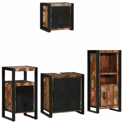 ManoManoGeneral description This cabinet set combines functionality with a trendy industrial vibe, making it ideal for any modern living space. Designed primarily for indoor use, its stylish yet durable design complements various décors while maximizing storage and practicality. Perfectly sized for medium rooms, it helps organize your living area efficiently. Technical specifications Colour: Multicolour Material: Solid reclaimed wood Overall dimensions: 55 x 35 x 60 cm (L x W x H) Weight: 63.05 kg Number of items: 4 Assembly required: Yes EAN: 8721158305299 SKU: 3305637 Brand: vidaXL Other information
