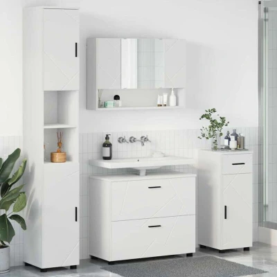 ManoManoGeneral description This sleek and modern Engineered Wood Bathroom Furniture Set is a smart way to upgrade any bathroom. Its simple and practical design caters to the needs of any home looking for style and functionality. At 192 cm tall, it sports a smooth matte finish and a rectangular shape, making it fit right into all kinds of bathroom styles. Its elegant look and practicality are perfect for a range of personal or family needs, offering great storage and organization options. Technical specifications Colour: White Material: Engineered wood Overall dimensions: 30 x 35 x 192 cm (L x W x H) Weight: 76.79 kg Number of items: 4 With drawer With plane mirror With shelf With 6 doors Indoor / outdoor: Indoor only Assembly required: Yes EAN: 8721288870308 SKU: 3393053 Brand: vidaXL Usage Keeping the furniture looking fresh is easy – just wipe it down with a damp cloth. This straightforward care keeps surfaces sparkling and enhances their lifespan, providing good value for years. Other
