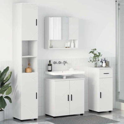 ManoManoGeneral description This Modern Bathroom Furniture Set is a smart way to tackle bathroom storage while keeping things stylish. With its clean, rectangular shape and wall-mounted design, it fits right in with modern decor, maximizing your space without sacrificing style. Technical specifications Colour: White Material: Engineered wood Overall dimensions: 61 x 35 x 64 cm (L x W x H) Weight: 66.69 kg Durable With drawer With plane mirror Frame material: Engineered wood With 7 doors Indoor use only Number of items: 4 Assembly required: Yes EAN: 8721288869500 SKU: 3392973 Brand: vidaXL Usage Perfect for both modern and minimalist bathrooms, the wall-mounted setup frees up floor space, making your bathroom feel more open and accessible. It adapts easily to different sizes, so you can find a spot for it anywhere. Other information