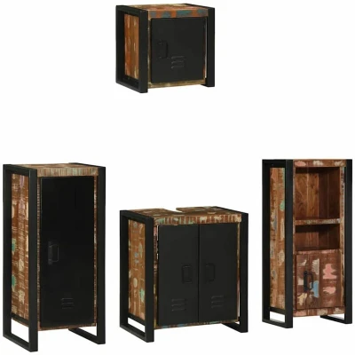 ManoManoGeneral description This Industrial Bathroom Cabinet Set is the perfect mix of style and function, made for modern homes that need efficient and chic storage. The cabinets fit right into urban and industrial-themed spaces, with each piece carefully designed to enhance your living area. With sleek lines and a striking textured finish, it adds a contemporary twist that can fit various home styles. Great for anyone who wants a tidy and organized space, this set is built to last, providing plenty of room for all your bathroom essentials. Technical specifications Colour: Multicolour Material: Solid reclaimed wood Overall dimensions: 40 x 35 x 90 cm (L x W x H) Weight: 69.3 kg Bathroom sink cabinet dimensions: 55 x 35 x 60 cm (L x W x H) Bathroom cabinet dimensions: 40 x 35 x 90 cm (L x W x H) Wall-mounted bathroom cabinet dimensions: 40 x 30 x 90 cm (L x W x H) Wall-mounted bathroom cabinet dimensions: 40 x 30 x 40 cm (L x W x H) Number of items: 4 Assembly required: Yes EAN: 8721158305350