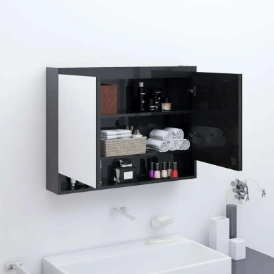 vidaXL Bathroom Mirror Cabinet 80x15x60 cm MDF Shining Black