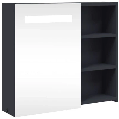 vidaXL Bathroom Mirror Cabinet Wall Mounted Grey Unit with LED Light and Ample Storage Space
