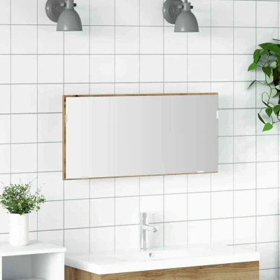ManoManoGeneral description This wall-mounted bathroom mirror combines style and practicality with a sleek design and built-in lights. It enhances the look of any bathroom while making grooming easy thanks to its handy shape and features. With a smooth finish and rectangular shape, it fits seamlessly with various interior styles, transforming your bathroom into a classy and organized space that is both attractive and functional. Technical specifications Colour: Artisan oak Material: Engineered wood Overall dimensions: 80 x 8.5 x 37 cm (L x W x H) Weight: 7.7 kg Power source: USB Lights type: Mirror lights Mirror type: Plane mirror Indoor use only Included Components 1 x Bathroom Mirror Assembly required: Yes Care & Maintenance Keep the mirror clean with a dry cloth; avoid harsh chemicals or abrasives. Follow assembly instructions closely, using the appropriate tools like a screwdriver and drill for proper installation. Other information Please note to use only certified DC 5V input. Higher