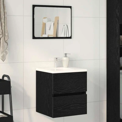 vidaXL bathroom sink cabinet black oak engineered wood ample storage wall mount vanity retro style 41x38.5x45 cm