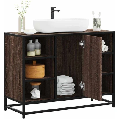 vidaXL bathroom sink cabinet brown oak engineered wood with metal frame 80x33x60cm modern retro vanity storage unit