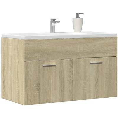 vidaXL bathroom sink cabinet/vanity sonoma oak engineered wood ample storage, wall mounted, modern