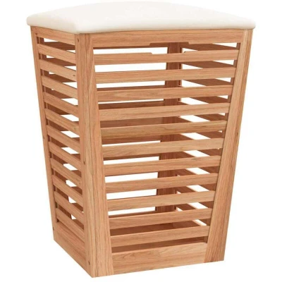 VidaXLThe wooden bathroom stool with a storage function makes a great addition to your bathroom. Solid walnut wood: Solid walnut wood is a dense and robust wood that is highly resistant to wear and tear, well known for its characteristic colour and attractive grain patterns.2-in-1 design: You can use the bath stool as comfortable seating and at the same time as a laundry basket to store your towels, blankets, etc.Ample storage space: The washing basket also provides ample space for keeping your daily laundry.Soft cushion: The comfortable padding, which is also the lid of the laundry hamper, offers a cosy seat for putting on stockings, making nails or shaving.Great ventilation: The shower stool is designed with a slatted look, which guarantees optimal ventilation. Note: Each product comes with an assembly manual in the box for easy assembly.