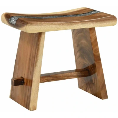 This Modern Shower Stool features a simple and refined design, suitable for contemporary bathroom settings. Made with solid wood and a handcrafted surface, its sleek legs provide durability while maintaining an attractive appearance. Its clean silhouette combines modern design with practical functionality, offering stable support in indoor areas. Whether used as a stool, plant stand, or bathroom accessory, it provides stability while complementing the room’s style. Its nature-inspired design blends with a variety of interiors, adding a subtle, elegant touch to any space. Material Composition: Made from solid suar wood, the stool is durable and resilient. Polyresin enhances its structure and adds visual interest while resisting scratches and wear. The combination of these materials balances elegance and practicality, suitable for daily use in humid bathroom environments. Intricate Surface Pattern: A notable feature of the stool is its handmade wood and resin patterned top with shattered glass. This detailed design gives each stool a distinctive look, adding character to any bathroom and reflecting careful craftsmanship. Durable Craftsmanship: Handmade with attention to detail, it combines sturdy materials that handle regular use and damp conditions. The design provides stability and safety while maintaining an attractive look, offering a dependable seating option for everyday use. Its craftsmanship meets both aesthetic and functional standards. Functional Versatility: More than a shower stool, its design and durable materials suit a range of indoor uses. Place it beside a bathtub for holding essentials, or use it as a small plant stand. Its brown and natural tones fit well with different interior styles, showing its versatility. Care Instructions: Caring for this shower stool is simple: wipe it clean with a damp cloth. Regular upkeep helps maintain its appearance. The protective coating supports color retention and finish, contributing to long-term use with minimal effort.