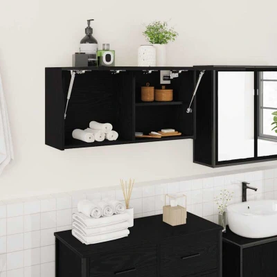 vidaXL bathroom wall cabinet black engineered wood 80x25x40 cm modern storage for bathroom/kitchen/living