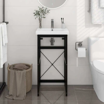 VidaXLThis bathroom washbasin frame is a perfect match for your bathroom with a clean, tidy appearance. Made of powder-coated iron, this wash stand is weather-resistant and durable. The washbasin frame gives easy access to towels and baskets and creates a more ample space than closed storage. The bathroom console frame is easy to clean with a damp cloth.