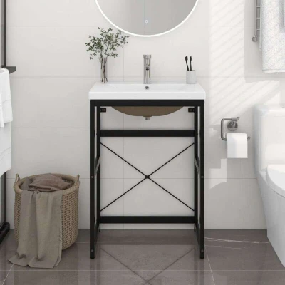VidaXLThis bathroom washbasin frame with a bulid-in basin is a perfect match for your bathroom or washroom with a clean, tidy appearance. The wash stand is made of powder-coated iron, making it stable and durable. This washbasin frame gives easy access to towels and baskets and creates a more ample space than closed storage. Made of ceramic, the basin can not only serve as a vessel for daily use but also as an adornment in your living space. Thanks to its trendsetting and contemporary design, this washbasin will definitely suit any decor. An overflow is also equipped to flow water out when it gets too full. Its glazed surface brings itself a modern yet elegant design. Additionally, the washbasin frame and basin are easy to clean with a damp cloth. Please note: The tap and the drain are not included in the delivery.