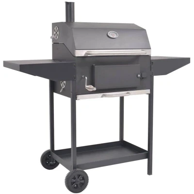 VidaXLWith this heavy-duty charcoal smoker, consisting of generous 1 big cooking chamber and a robust firebox, you can conveniently grill and smoke delicious meat, fish and vegetables. The perfectly sealed, thick metal body gives our smoker excellent heat-retention and heat-distribution characteristics. You can monitor the temperature in the chamber with the integrated thermometer on the hood. The smoker also has two side tables on which you can place spices, ingredients, utensils and other barbecue essentials. You can also keep items within reach on the shelf underneath. Thanks to the stainless steel handle, opening the chamber is safe and convenient. The smoker is equipped with 2 wheels so it can be easily moved around for outdoor parties, picnics and gatherings.