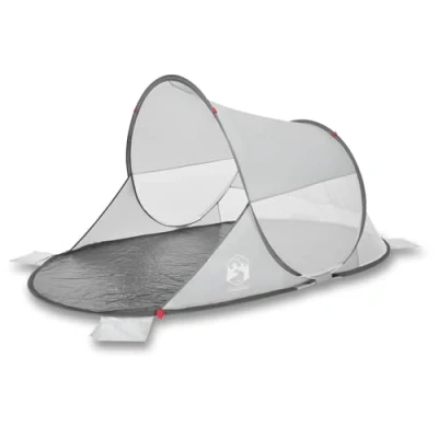 This beach tent offers you and your friends a cosy shelter in the hot summer or use it as a shade over the sandpit and paddling pool. Waterproof: This camping tent, made from polyester with a PU coating, is waterproof and wind resistant.Pop-up design: Thanks to the pop-up design, you can easily set up and fold the tent in seconds. Just take it out of the bag, toss it on the ground, and watch it pop up automatically.Opened door: The fully open door allows you to enjoy the beautiful beach scenery with your family or entertain the children freely on a delightful summer afternoon.Lightweight and portable: The foldable and lightweight design allows you to easily pack the tent and store it in the included carry bag for easy transport.Stable and safe: Secure your tent firmly to the ground with the stakes and guy ropes provided to ensure stability and safety. Warning:Keep all flame and heat sources away from this product fabric.