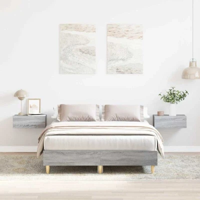vidaXL bed frame engineered wood grey sonoma double bedstead 140x190cm modern w/eucalyptus legs for bedroom