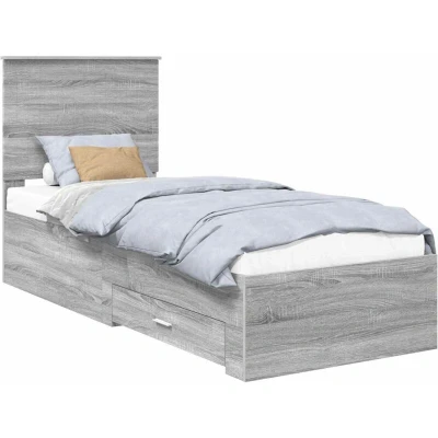 vidaXL Bed Frame Grey Sonoma and Silver 75 x 190 cm Engineered Wood