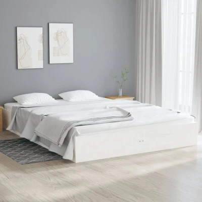 vidaXL Bed Frame in Solid Pinewood, Small Double Size (120x190 cm), Modern Style for Bedroom, White