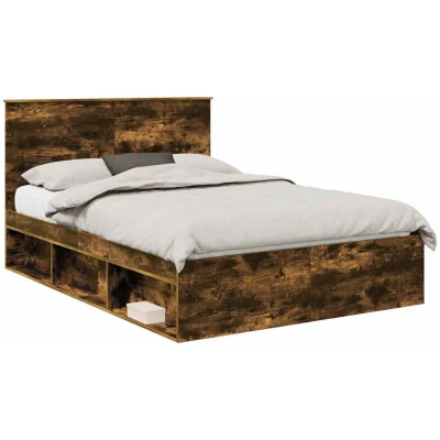 vidaXL Bed Frame Smoked Oak 140 x 200 cm Solid Pine Wood