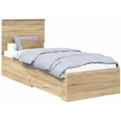 vidaXL Bed Frame Sonoma Oak and Silver 75 x 190 cm Engineered Wood