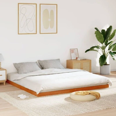vidaXL Bed Frame Wax Brown, 180x200 cm Super King, Solid Wood Pine, Plywood Slats, Modern Bedroom Sleeping Base