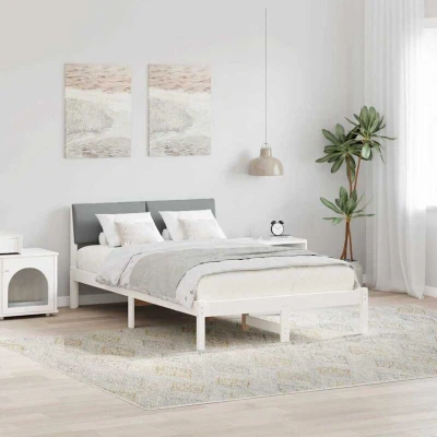 ManoManoGeneral description This contemporary platform bed frame with headboard combines style and functionality, designed to add a fresh and sleek look to any bedroom. It features a beautiful rectangular shape that complements modern home decor, offering a perfect blend of aesthetic appeal and practicality. This bed frame is ideal for those looking for a stylish, yet durable solution for their sleeping space, adding a touch of elegance and sophistication to any bedroom configuration. Technical specifications Colour: White and light grey Material: Solid pine wood Overall dimensions: 214 x 125.5 x 78.5 cm (L x W x H) Max weight: 200 kg Has slatted frame: Yes Max number of people: 2 Assembly required: Yes Included components: 1 x Bed frame, 1 x Headboard EAN: 8721288794475 SKU: 878543 Brand: vidaXL Care & Maintenance Maintenance is effortless; simply wipe the frame clean with a damp cloth to maintain its pristine appearance. Regular cleaning ensures long-lasting allure while being gentle on the