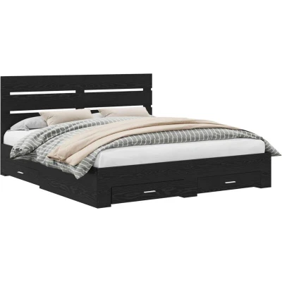 vidaXL Bed Frame with Drawer Black Oak 180 x 200 cm Engineered Wood