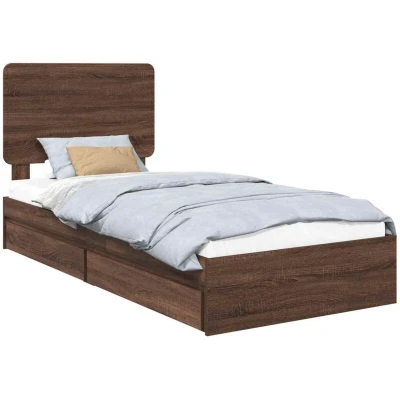 vidaXL Bed Frame with Drawer Brown Oak 90 x 190 cm Engineered Wood