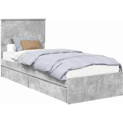 vidaXL Bed Frame with Drawer Concrete Grey 75 x 190 cm Engineered Wood