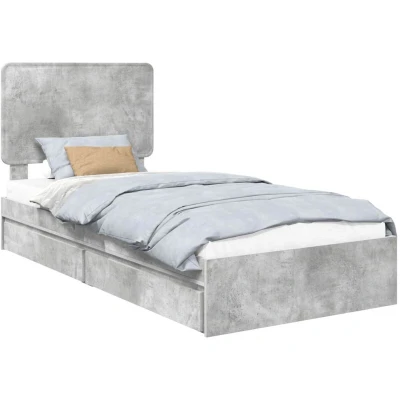 vidaXL Bed Frame with Drawer Concrete Grey 75 x 190 cm Engineered Wood