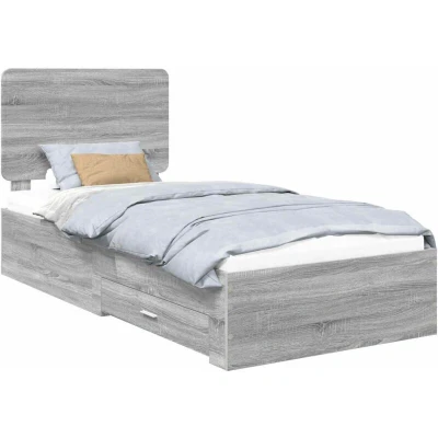vidaXL Bed Frame with Drawer Grey Sonoma 75 x 190 cm Engineered Wood