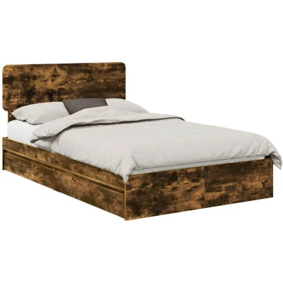 vidaXL Bed Frame with Drawer Smoked Oak 120 x 190 cm Engineered Wood